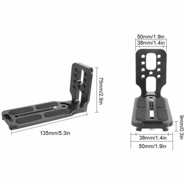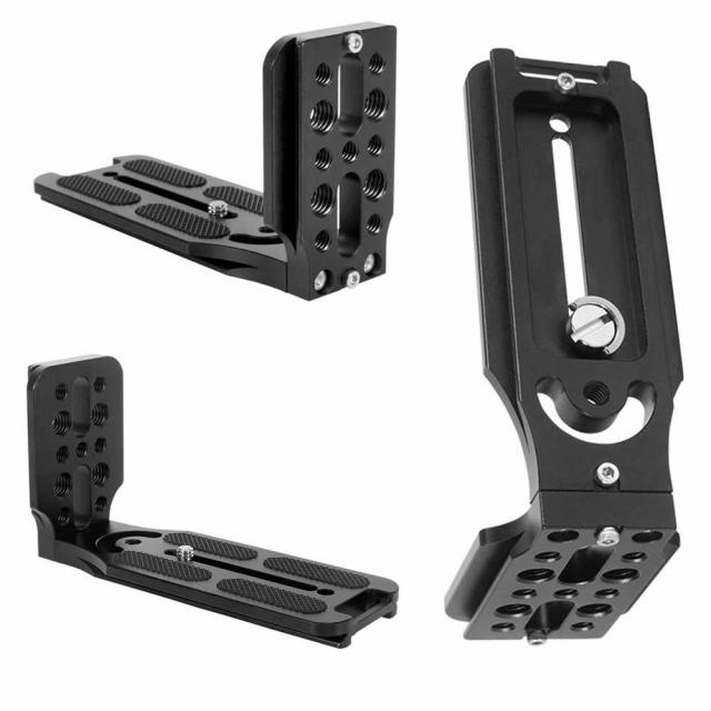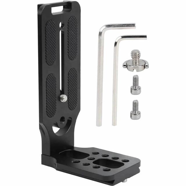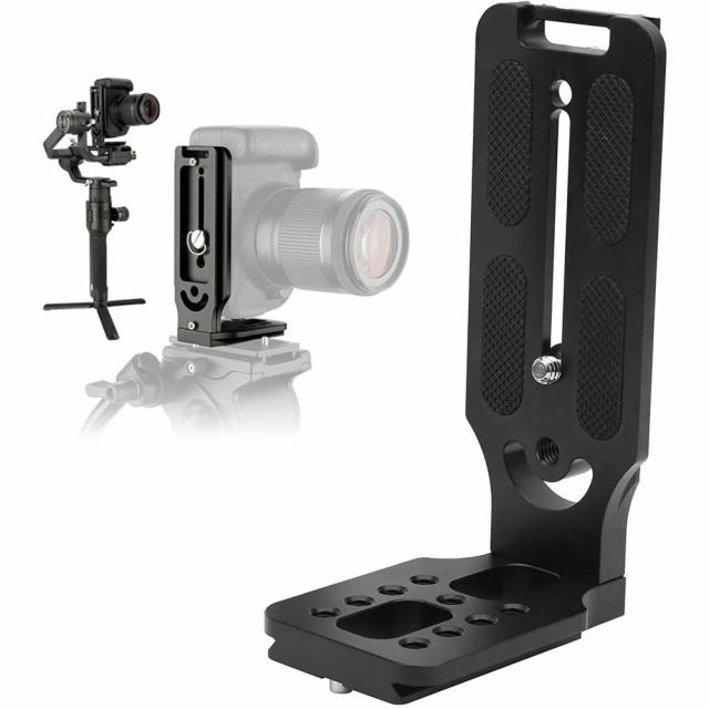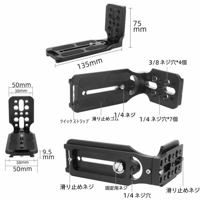 アルミ合金 カメラLブラケット クイックリリースプレート 垂直撮影 QRプレート ブラック カメラL字型 ブラケット 三脚 スタビライザーに対応 1/4インチネジ穴と1/4インチネジ付きSONY/CANON/NIKONカメラ/ビデオカメラ/三脚/一脚に対応