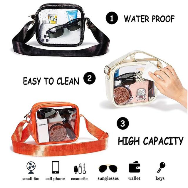 クリア ショルダーバッグ 透明 クロスバッグ クロスボディ 肩掛け 斜めがげ 見せバッグ ビニール PVC マチつき 推し活 ポーチ ボックス スクエア ハンドストラップ 夏 水泳 ビーチ ストリート シンプル メンズ レディース