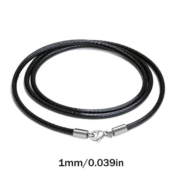 防水編組レザーネックレス,コード,ステンレス鋼,留め金,男性と女性用のコネクターチェーン,1〜3mm, 40〜65cm