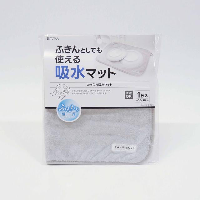 ふきんとしても使える吸水マット 30×40cm グレー RS [たっぷり吸水 ふんわり極厚 洗濯OK 東和産業]