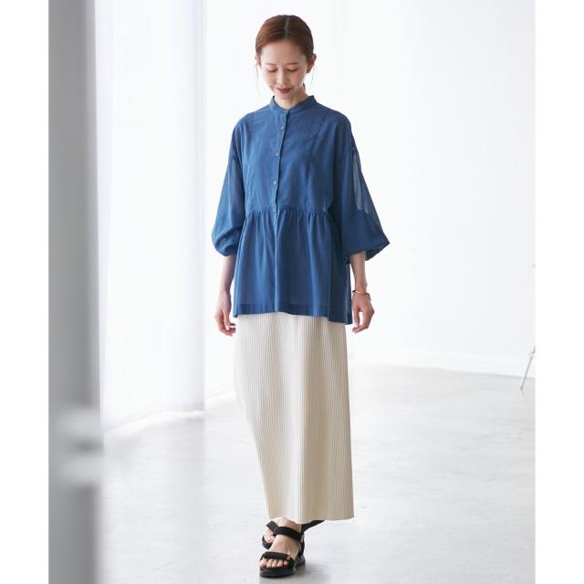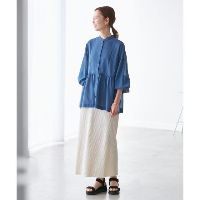 【接触冷感・通気性】お着軽シャツシリーズ/綿ボイルペプラムシャツ