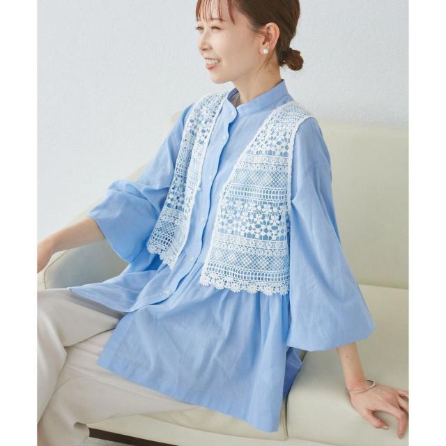 ロペピクニック(ROPE’ PICNIC)/【接触冷感・通気性】お着軽シャツシリーズ/綿ボイルペプラムシャツ