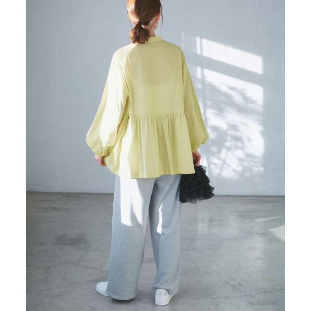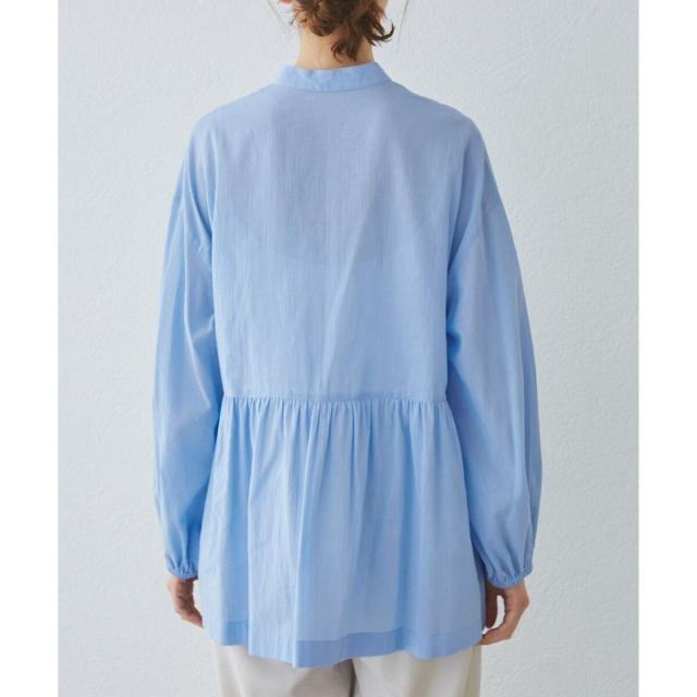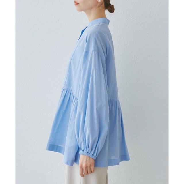 ・軽くてソフトな綿ボイルの長袖ペプラムシャツ。