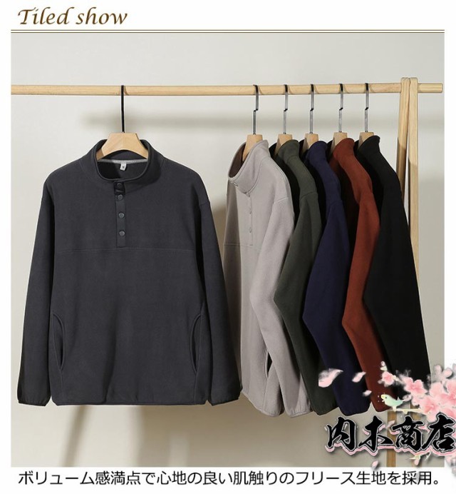 裏起毛 長袖トレーナー 送料無料 ヘンリーネック トップス 立ち襟 プルオーバー 長袖トレーナー カジュアル 無地 メンズ スウェット ハイネック フリース ロンT 秋冬物 厚手 暖かい 保温 もこもこ プルオーバーパーカー