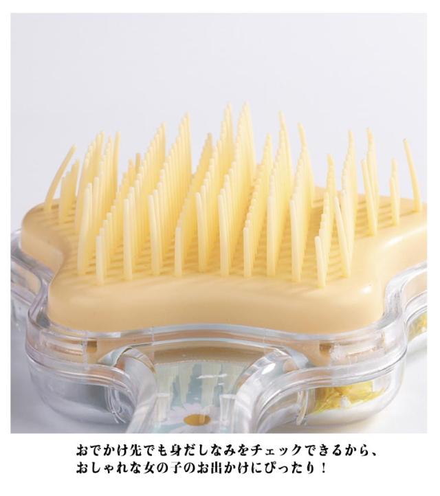 | 全20タイプ!「キラキラキッズヘアブラシ」 頭皮に優しいやわらかい素材 おでかけ先でも身だしなみをチェックできるから、おしゃれな女の子のお出かけにぴったり! | |