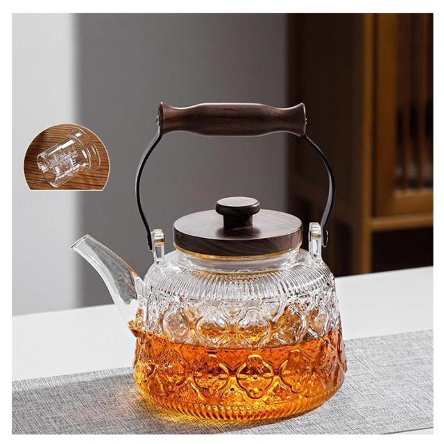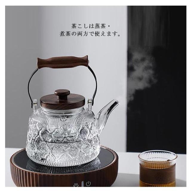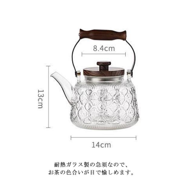 紅茶ポット ティーポット ポット 工芸茶 電気コンロ対応 直火可 ガラス急須 透明 茶こし付き 蓋付き 1000ml 木製持ち手 おしゃれ ガラス製ポット ジャンピング フルーツティー ティーポット 花茶 ハーフティー 蒸茶 煮茶 に
