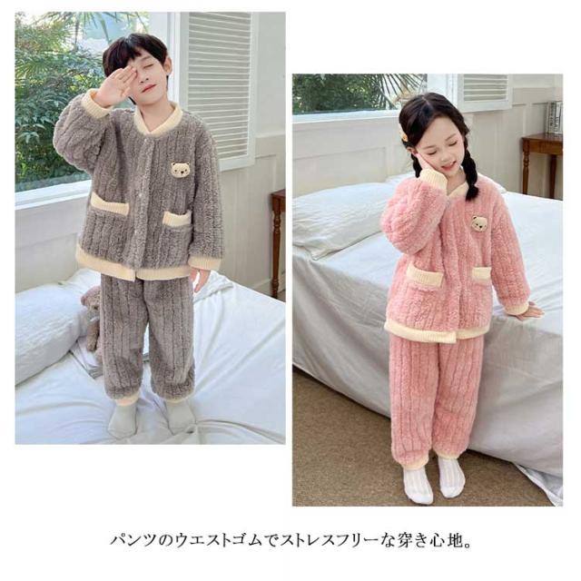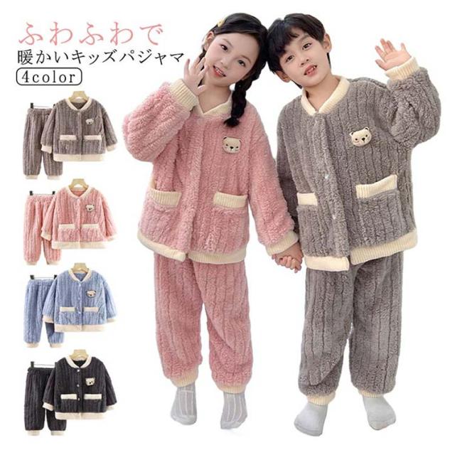 キッズ パジャマ ルームウェア 上下セット ふわふわ 冬 長袖 暖かい フリースパジャマ ジュニア 男の子 もこもこ 部屋着 寝巻き パジャマ 防寒 子供服 女の子 ナイトウェア 春 秋 寝間着 かわいい おしゃれ 無地