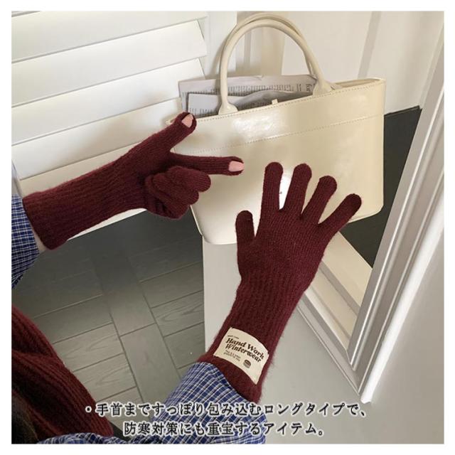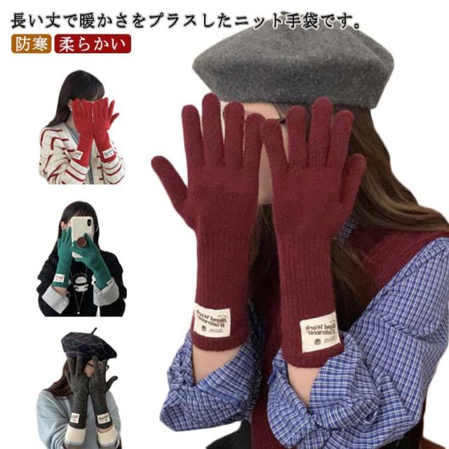 レディース ニット 柔らかい 裾長め ガーリー グローブ 長め カジュアル 暖かい 手袋 防寒 保温 自転車 通勤 通学