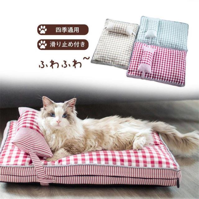犬ベッド ペットベッド 犬 ペットソファー 可愛い チェック柄 かわいい 丸洗い ペットクッション 枕付き 猫犬用 マット 通年 小型 中型 洗える