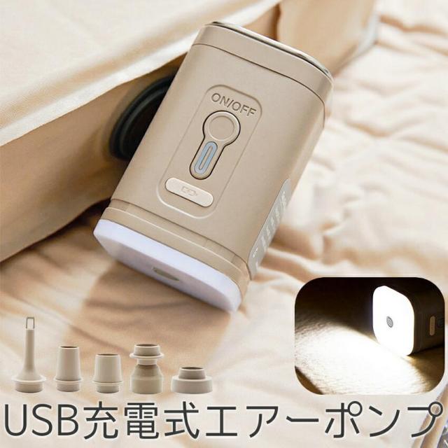 電動 エアーポンプ ミニ 電動 空気入れ 携帯ポンプ 電動ポンプ 電動 空気入れ 5つのノズル ライト付 エアポンプ エアーベット用ポンプ 1200mAhバッテリー Type-C充電式 コンパクト ミニポンプ キャンプ アウトドア 防災用