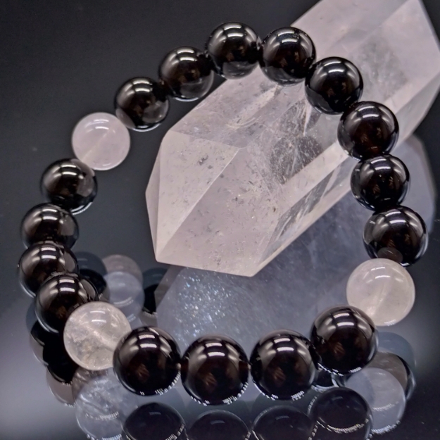 ヒマラヤ水晶とモリオンのMIXブレスレットです。モリオンはチベット産になります。