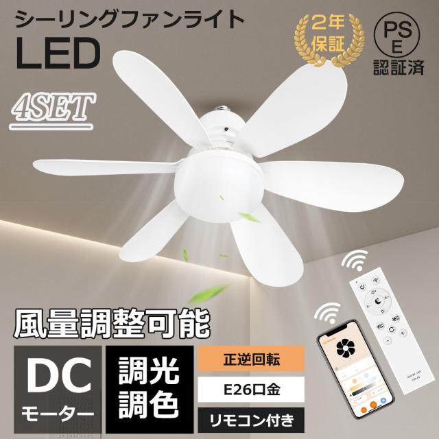 【4台セット】シーリングファンライト シーリングファン LED 6畳 8畳 調光調色 風量調節 リモコン シーリングライト ファン付き照明 照明器具 天井照明 サーキュレーター 2年保証 DCモーター 静音 E26 正逆回転切り替え 空気循環 スマホ操作 タイマー 常夜灯 WiFi対応