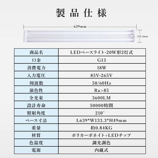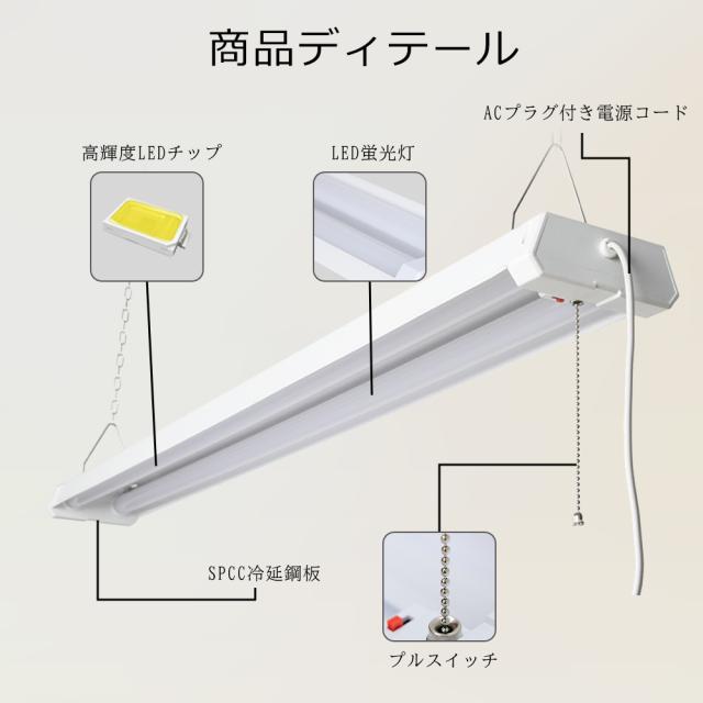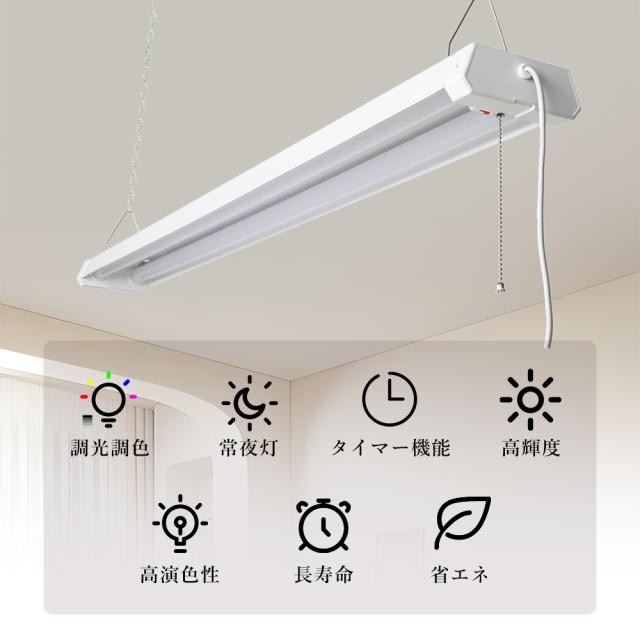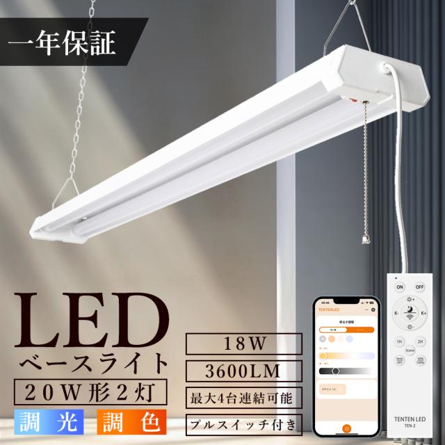 LED蛍光灯 リモコン付き 調光調色 20形 器具一体型 配線工事不要 ACプラグ付 18W 3600LM LEDベースライト 吊り下げ プルスイッチ付き 20W型 2灯 高輝度 省エネ LED 照明器具 タイマー付き 照明 スマホ アプリ スマート 常夜灯付き 蛍光灯器具 1年保証 PSE認証済 施設用