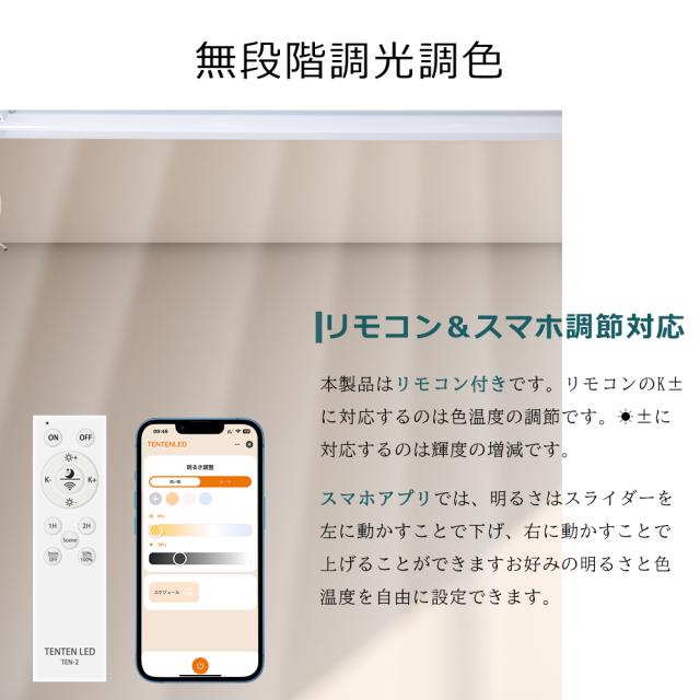 調色機能:電球色〜昼光色(3000K〜6000K)無段階調光調色