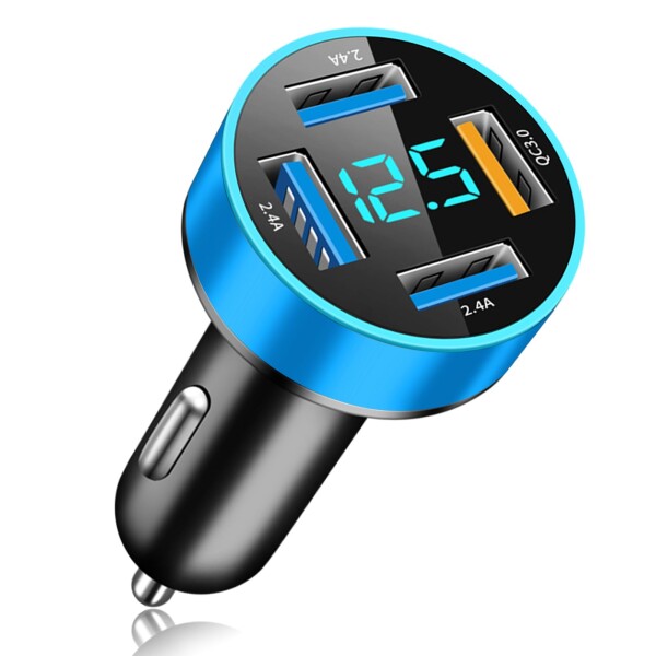 YUGYUG 対応 シガーソケット usb 車の電圧測定 しがーソケット 電圧計 LEDデジタルディスプレー搭載 車 充電器 シガーソケット 4連 軽量 超急速充電 12〜24V車対応 車載充電器(ブルー)