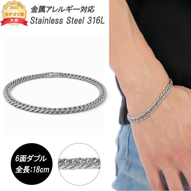 喜平 ブレスレット プラチナ カラー ステンレス 6面 6面ダブル 18cm キヘイブレスレット サージカルステンレス 316L PT ダブル キヘイ メンズ ジュエリー アクセサリー レディース 男女兼用 金属アレルギー メンズブレスレット 誕生日 プレゼント 男性ギフト ホワイトデー