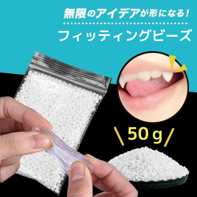 フィッティングビーズ 50g 簡易取説付き 高品質 プラスチック 熱に強い ハードタイプ 自由成形 ドラキュラ 歯 補修 DIY