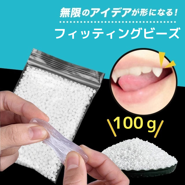 フィッティングビーズ 100g 簡易取説付き 高品質 プラスチック 熱に強い ハードタイプ 自由成形 ドラキュラ 歯 補修 DIY