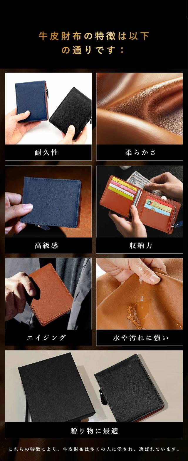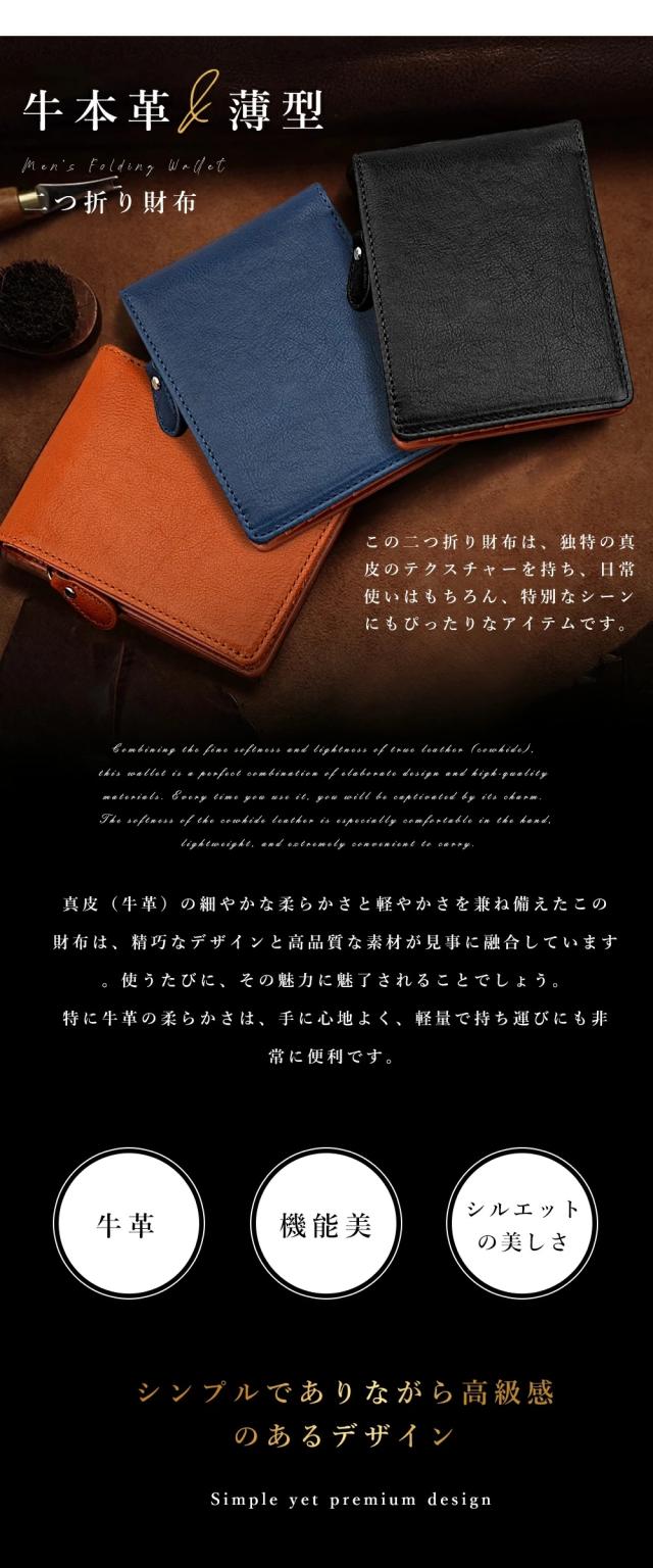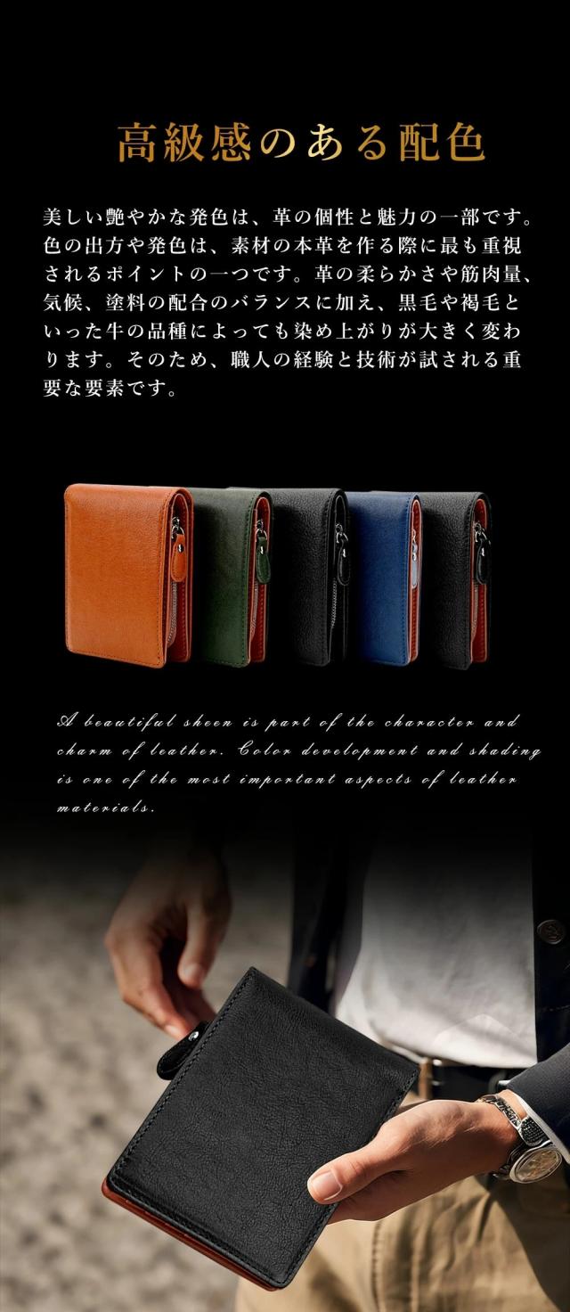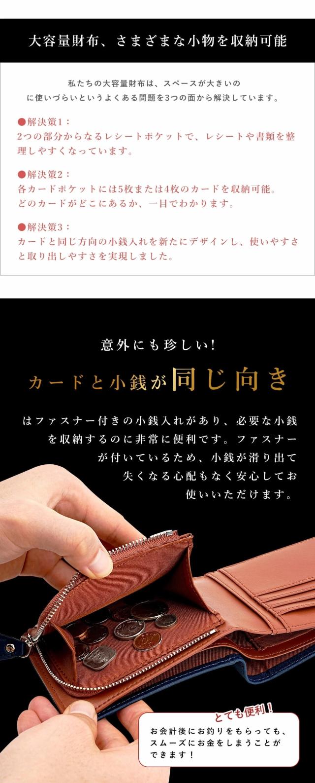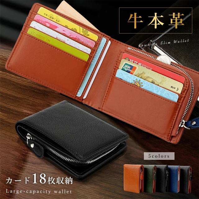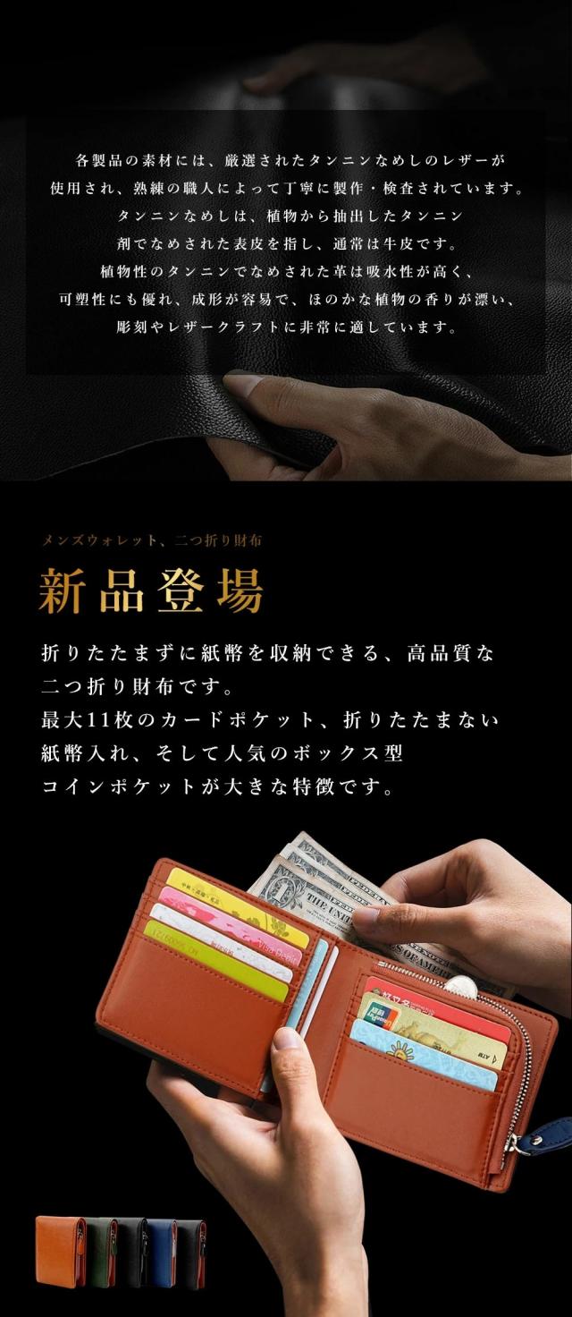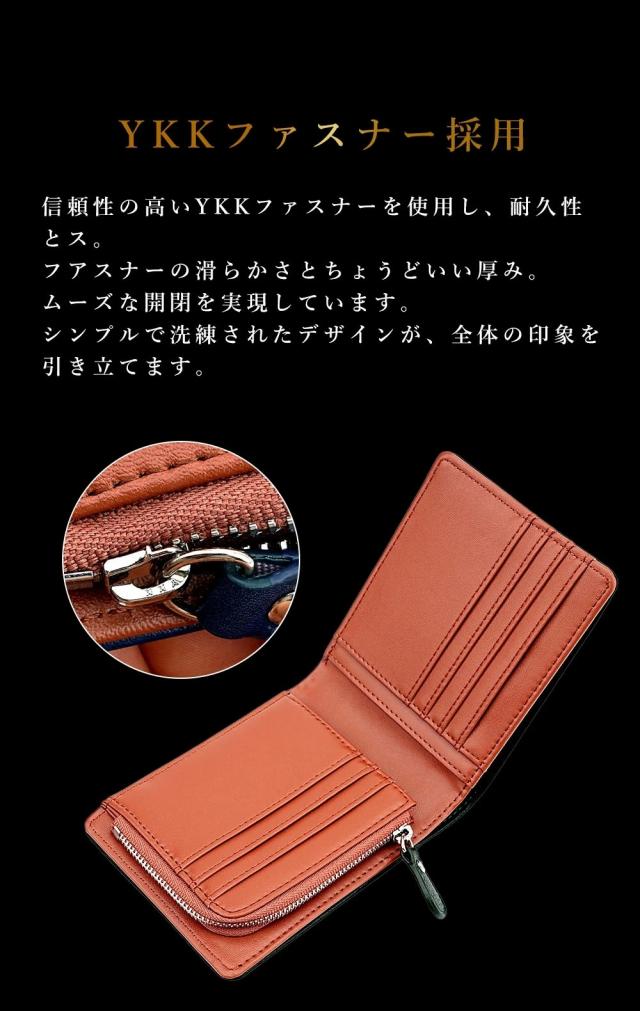 メンズ 二つ折り財布 YKKファスナー 高級感 本革・牛革 薄型・軽量 大容量 ポケット付き レザー・カーボンレザー レディース対応 コンパクト 折りたたみ カード収納 ブラック ファスナータイプ 小銭入れ付き 小銭入れ