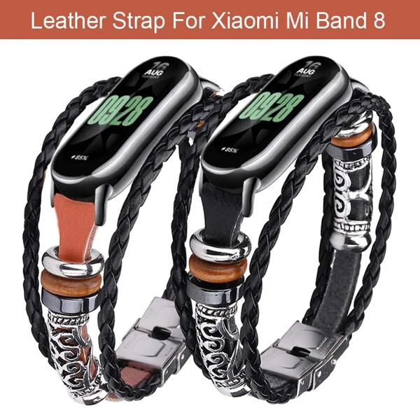 Xiaomi Mi Band 9用レザーストラップ,Xiaomi Mi Band 8用レザーブレスレット,Mi Band9用レトロビーズブレスレット