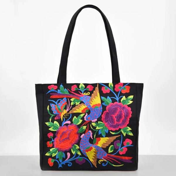 花柄の刺繍入りキャンバストートバッグ,レディースショルダーバッグ,大容量のエスニックスタイル