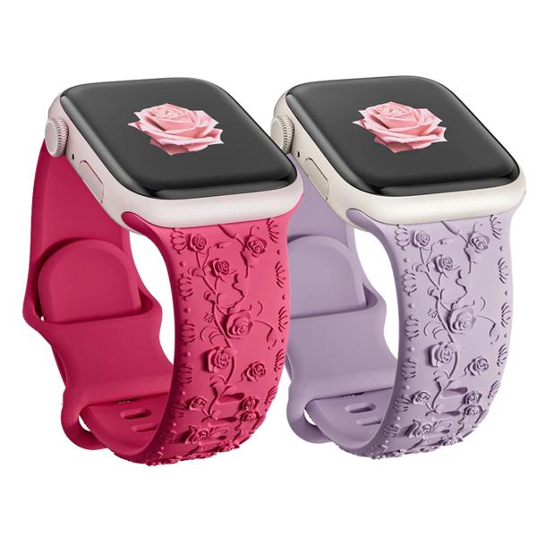 花が刻印されたAppleWatchブレスレット,44mm, 45mm, 41mm, 49mm, 42mm, 46mm, iwatchシリーズ10,8,7,3,9 ultra, 2 se、40mm