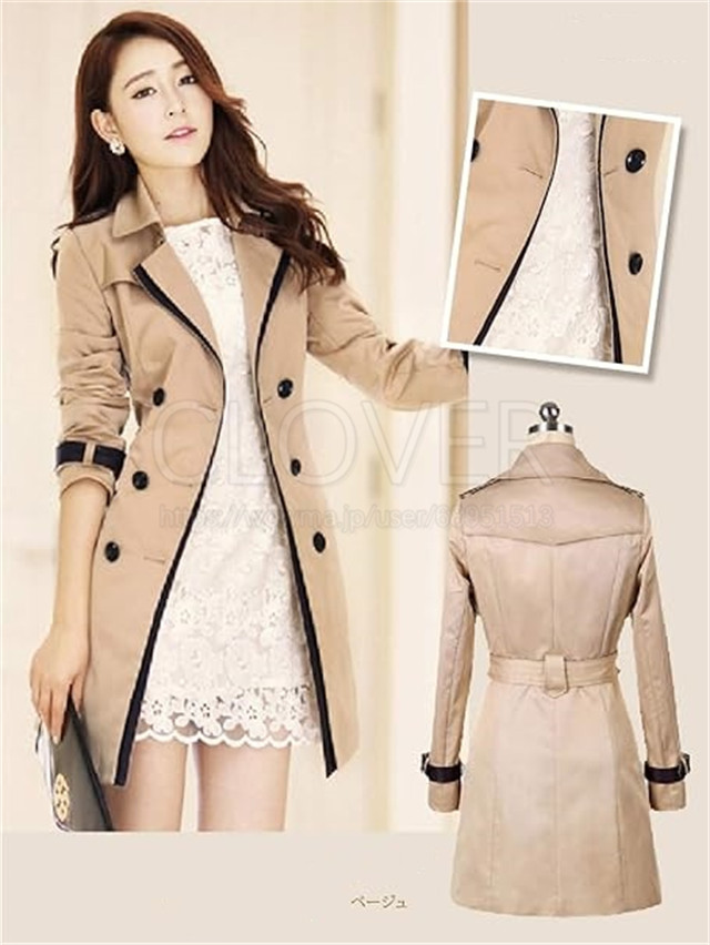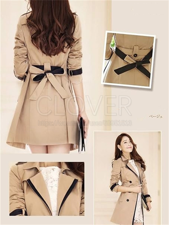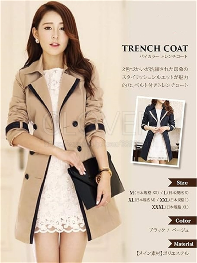 トレンチ コート ロング ベルト XS 〜 XL 長袖 バイカラー ベージュ 黒 ライン レディース