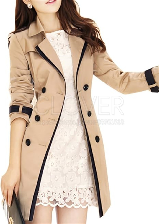 シンプルなデザインに、差し色の黒(ベージュ)ラインが加わった大人フェミニンな佇まいのあるバイカラー トレンチコートです。