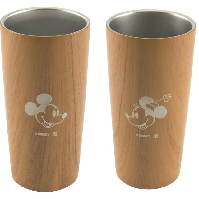 ディズニー 木目調ステンレス真空タンブラー 440mlペアセット ミッキー&ミニー 82115