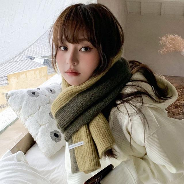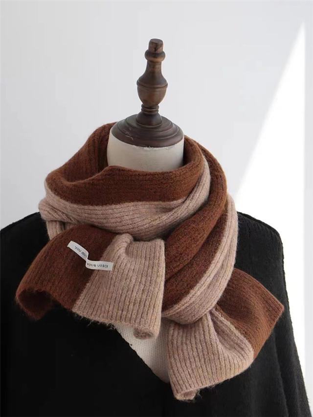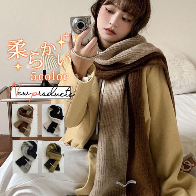 マフラー レディース ニットマフラー 厚手 配色 防寒 暖かい ふわふわ 柔らかい 楽ちん 肌触り 可愛い 無地 カラー豊富 コーデ プレゼント