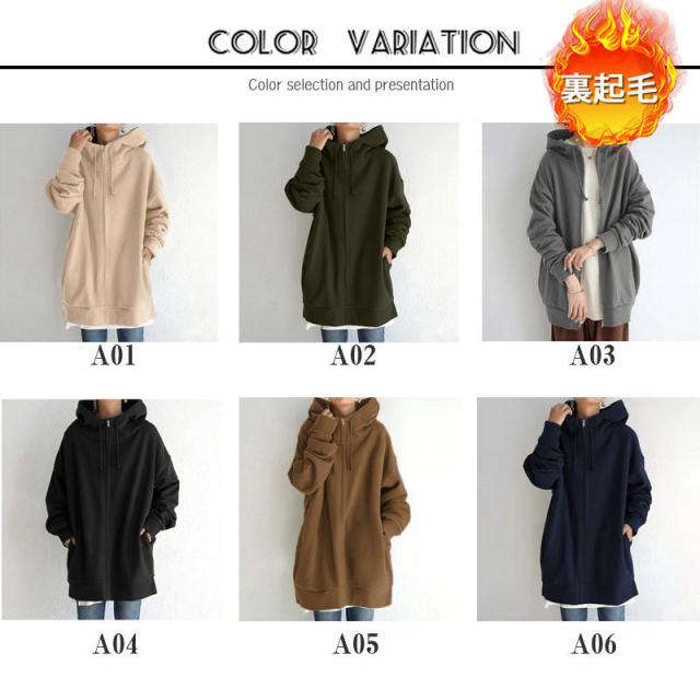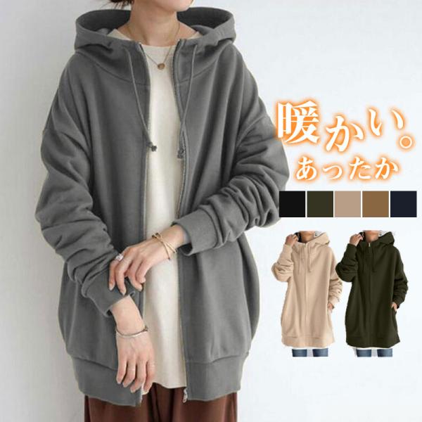 パーカー レディース 裏起毛 長袖 冬 フード付き 防寒対策 ボア ジップアップ 防風 暖かい ロング丈 スウェット トップス アウター あったか