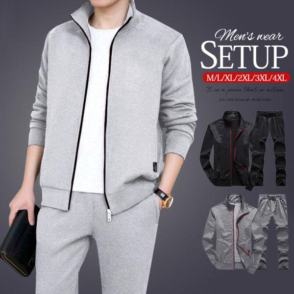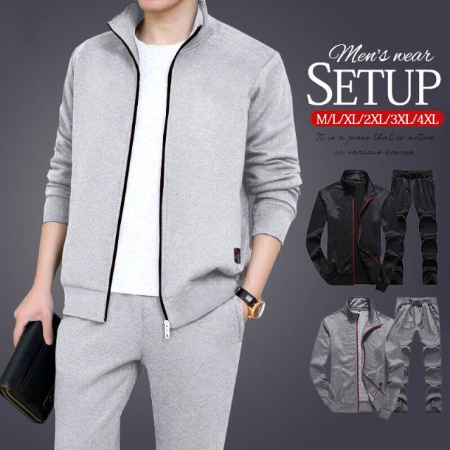 セットアップ メンズ 秋 春 長袖 ロングパンツ ジップアップ ジャージ 上下 ゴルフウェア 部屋着 大きいサイズ スポーツ リラックス シンプル