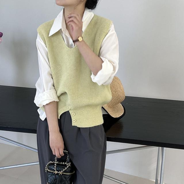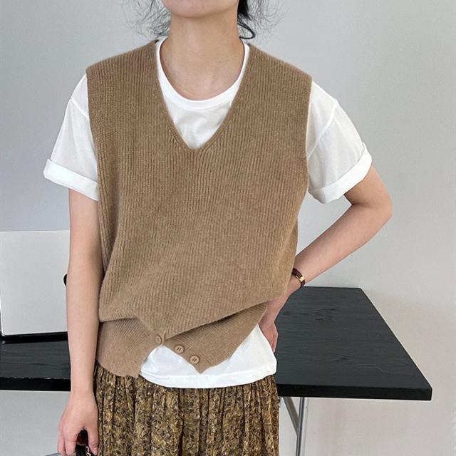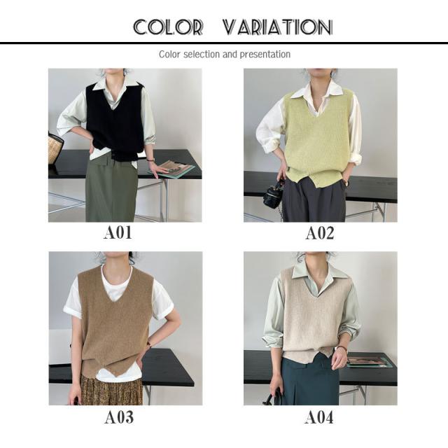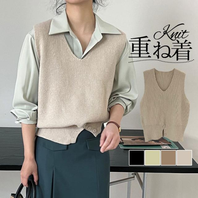 ニットベスト ジレ レディース 秋冬 春 Vネック セーター プルオーバー オフィス ノースリーブ 通勤 アウター トップス 重ね着 羽織り 着痩せ
