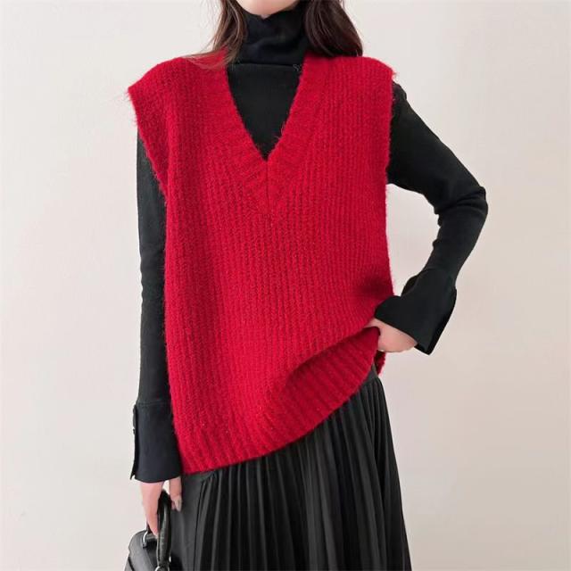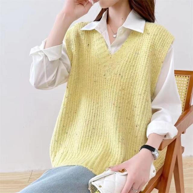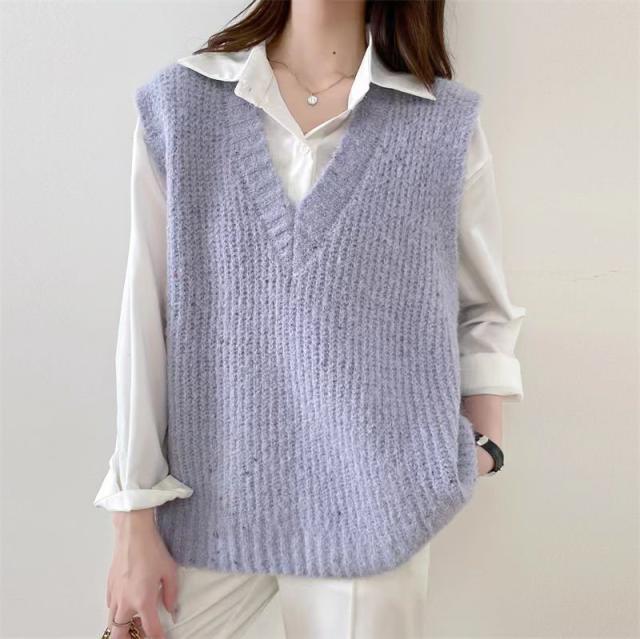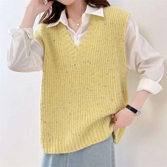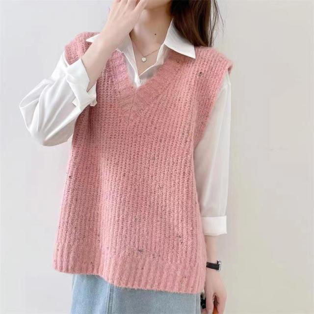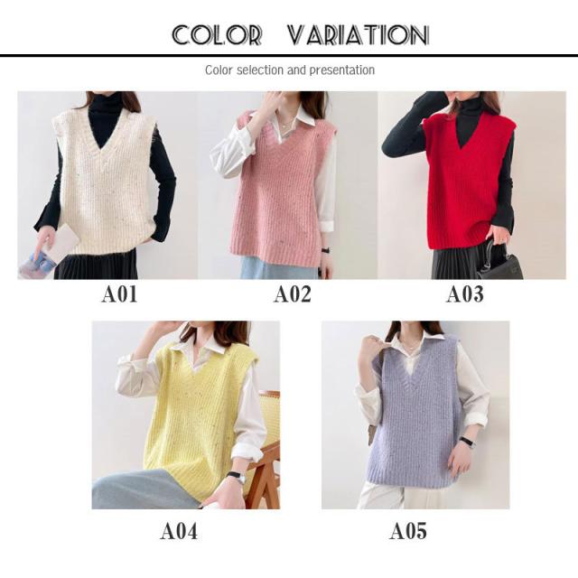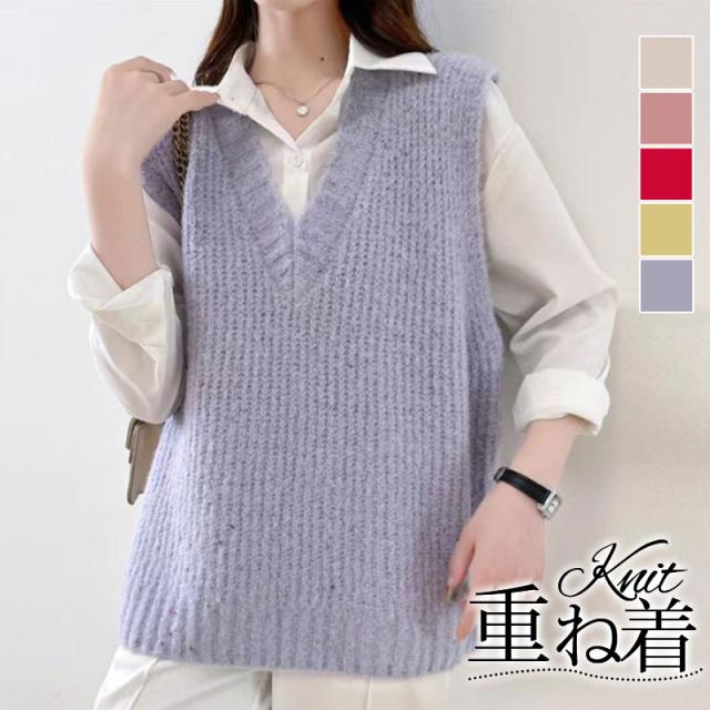 ニットベスト ジレ レディース 秋冬 春 Vネック プルオーバー セーター オフィス ノースリーブ 通勤 トップス 重ね着 羽織り 動きやすい 着痩せ