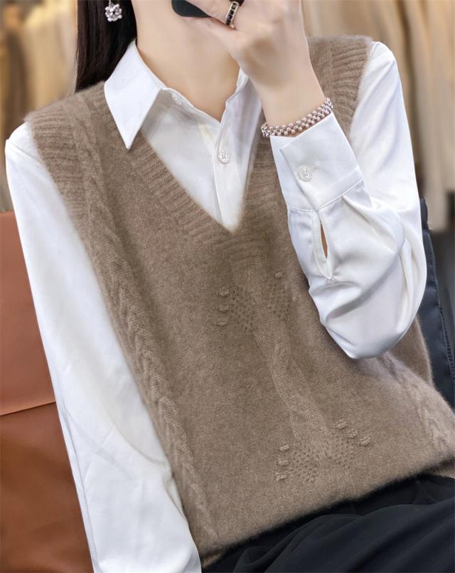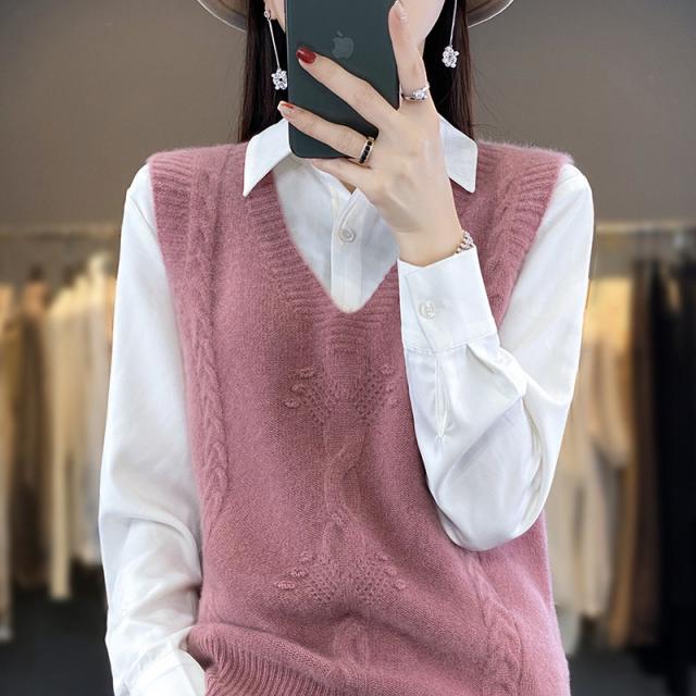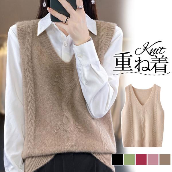 ベスト レディース ジレ ニット 秋 春 Vネック プルオーバー セーター ノースリープ レイヤード風 タンクトップ トップス 通勤 重ね着 オフィス