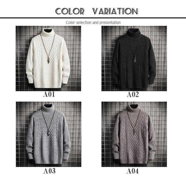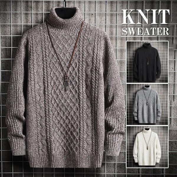 ニット セーター メンズ タートルネック ハイネック リブ編み カットソー トップス 秋冬 長袖 ルームウェア 暖かい 防寒 インナー お兄系 快適