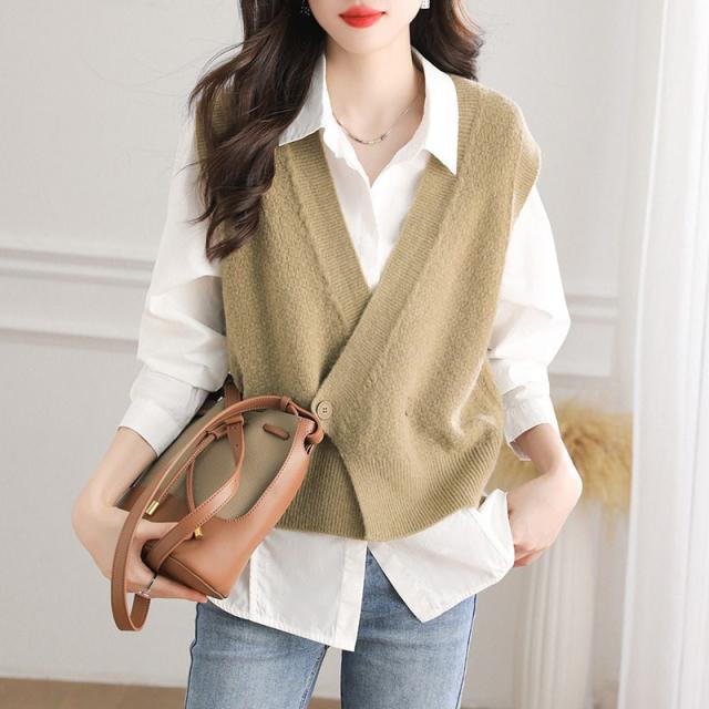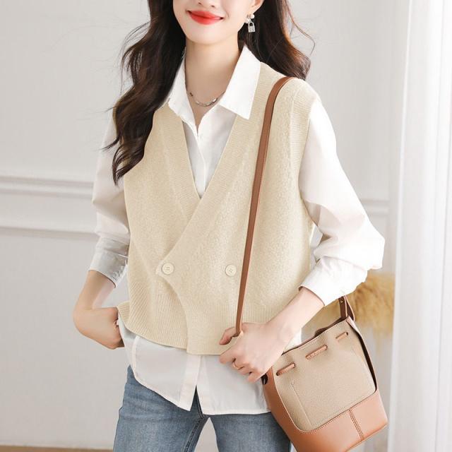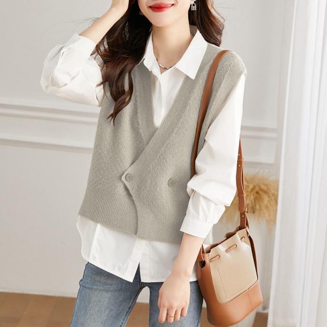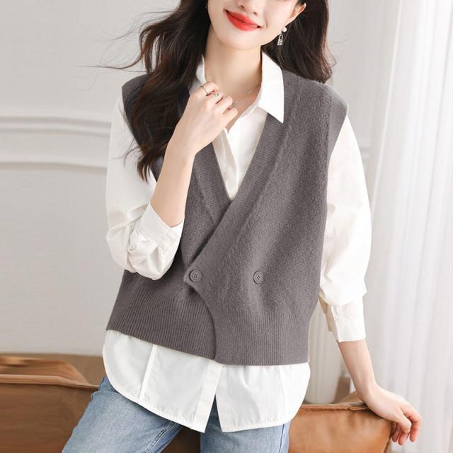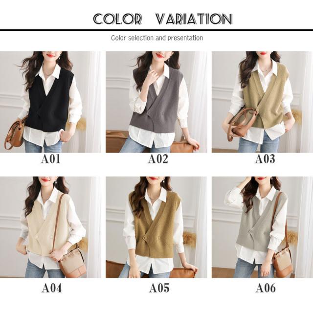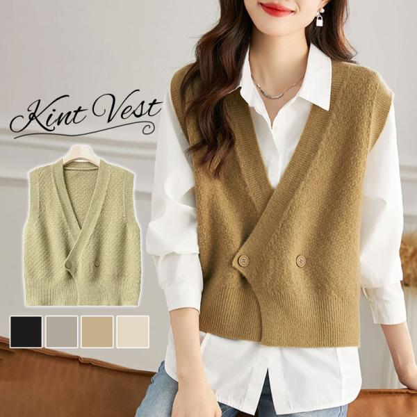 ベスト レディース ジレ ニット 秋 春 前開き セーター ノースリープ レイヤード風 タンクトップ チョッキ トップス 通勤 重ね着 オフィス