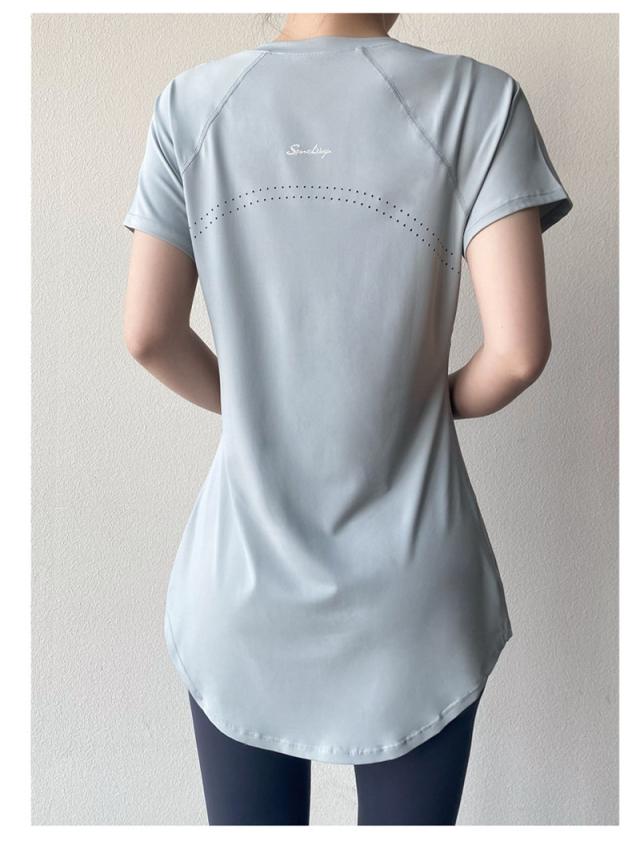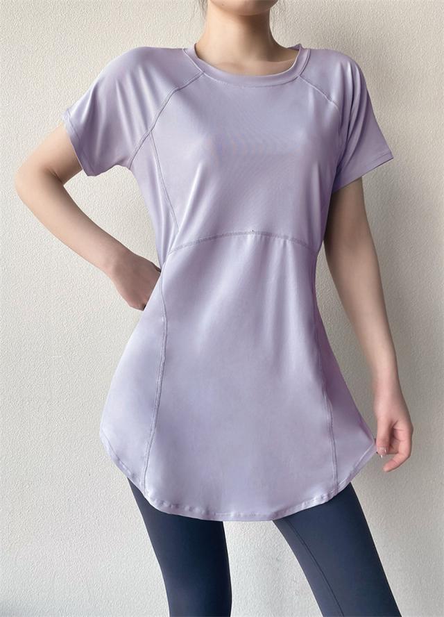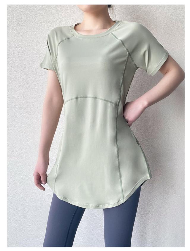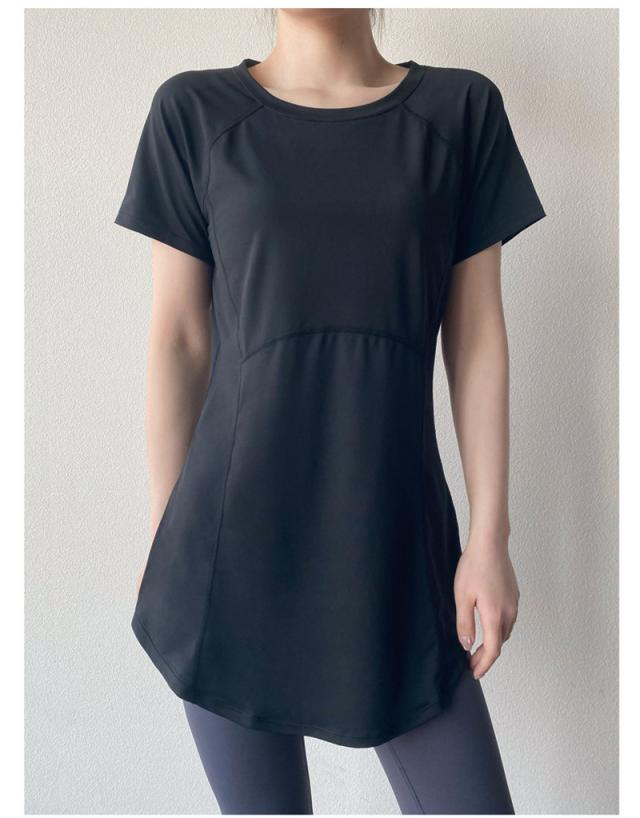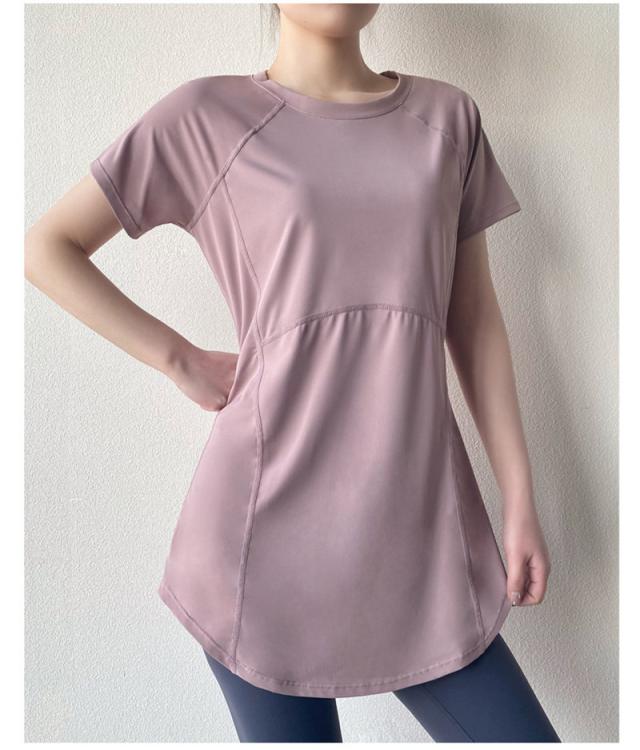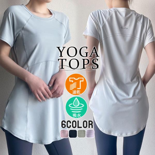 ヨガウェア トップス トレーニングウェア 半袖 スポーツウェア ゆったり ホットヨガ おしゃれ ヨガ ジム ロング丈 ダンス yoga 無地