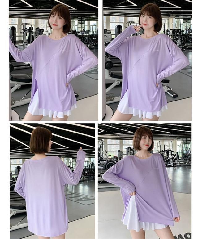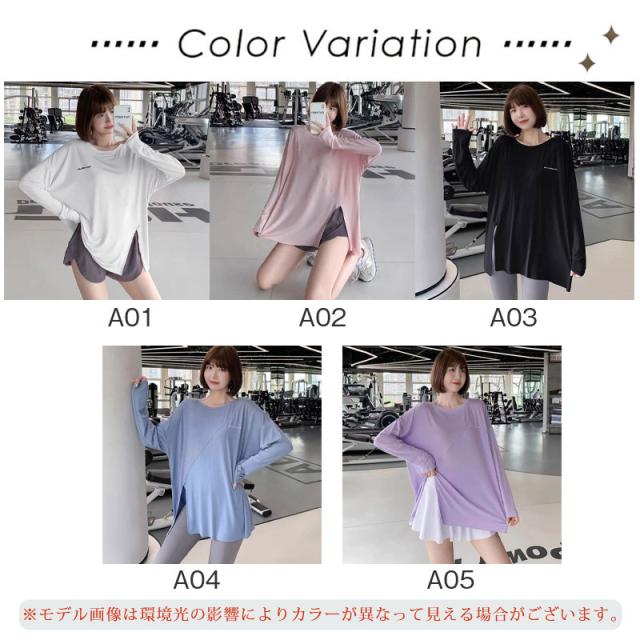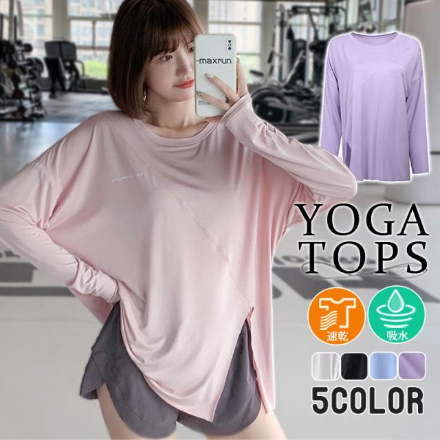 ヨガウェア トップス トレーニングウェア 長袖 スリット スポーツウェア ゆったり ホットヨガ おしゃれ ヨガ ジム ロング丈 ダンス yoga