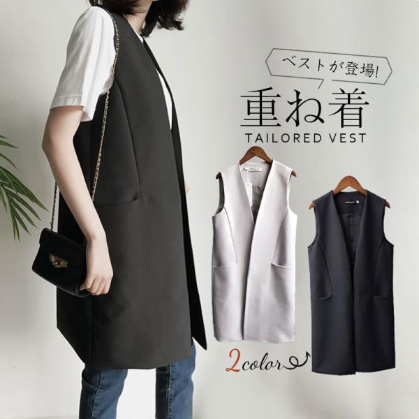 ベスト ジレ レディース ロングジレ スーツベスト 前開き フォーマル チョッキ シンプル オフィス おしゃれ 体型カバー ノースリーブ 通勤 上品