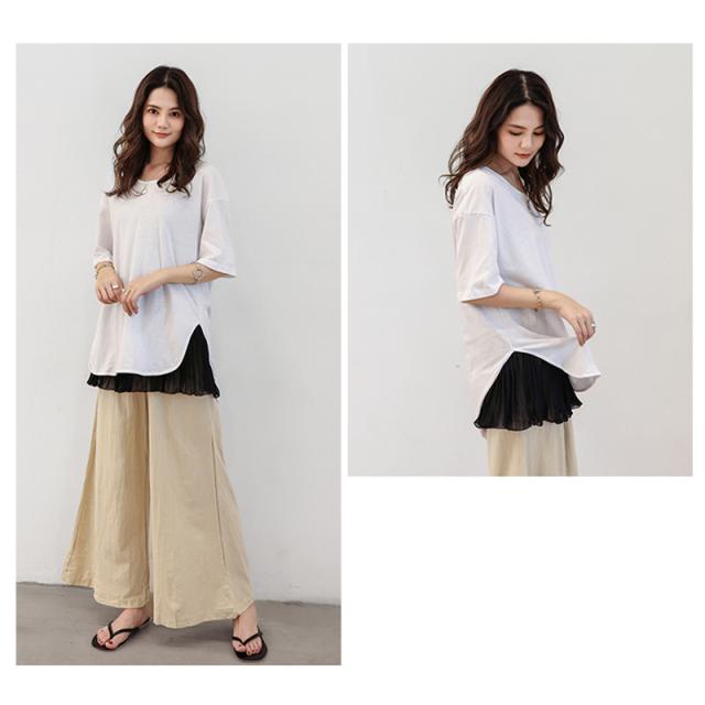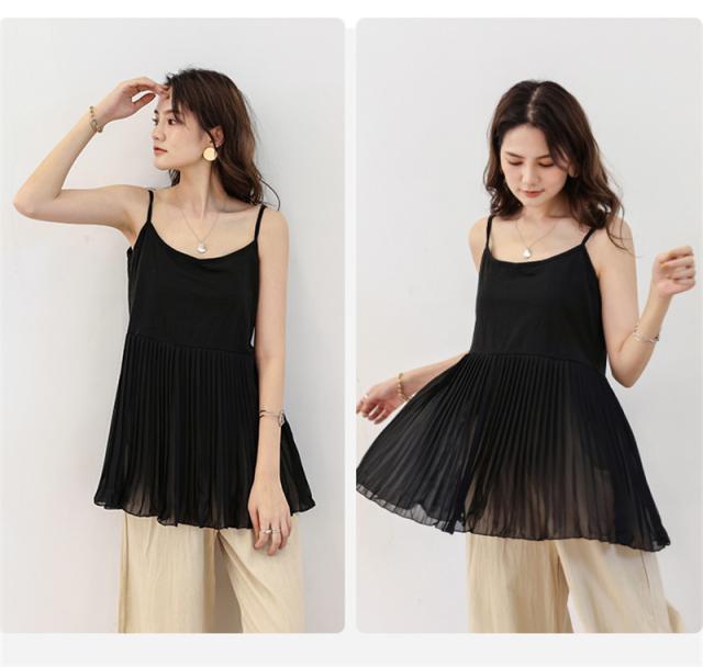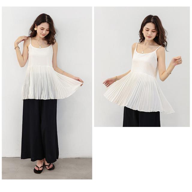 キャミソール ロング プリーツスカート シフォン レイヤード レディース ワンピース チュニック 薄手 着心地 体型カバー 重ね着 ルームウェア