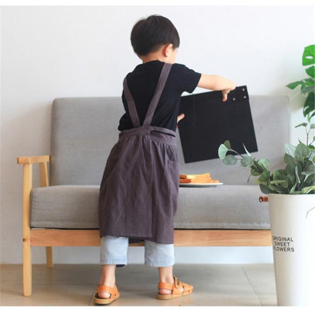 エプロン キッズ ポケット付き リネン 子供用エプロン キッズ用エプロン 男の子 女の子 ナチュラル 洗濯可能 かわいい おしゃれ お手伝い