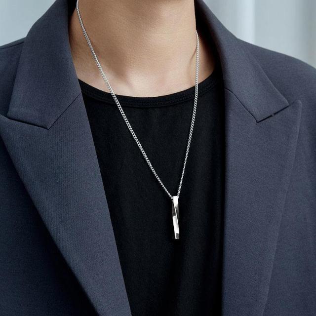 【国内当日発送】ネックレス ステンレス メンズ スティック 流線形 シルバー アクセサリー カジュアル 大人 プレゼント ギフト かっこいい