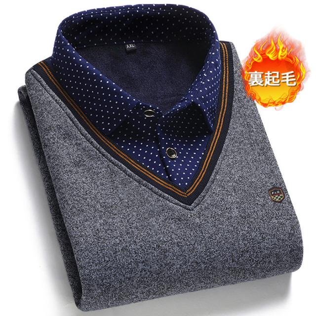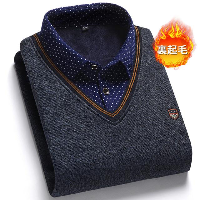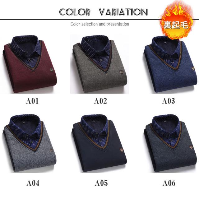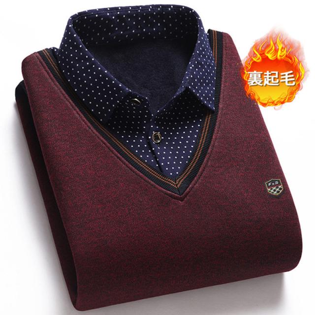 シャツ 裏起毛 防寒 メンズ レイヤード風 重ね着 長袖 ワイシャツ 秋冬 ビジネスシャツ 開襟 暖かい 厚手 トップス カジュアルシャツ 通勤通学