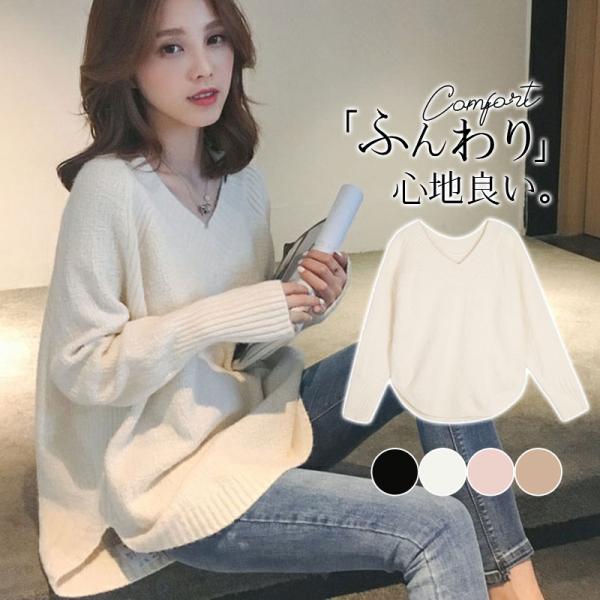 ニット セーター レディース 秋 春 Vネック 長袖 プルオーバー トップス 大人 女性 OL 大学生 高校生 定番 通勤 通学 お洒落 かわいい