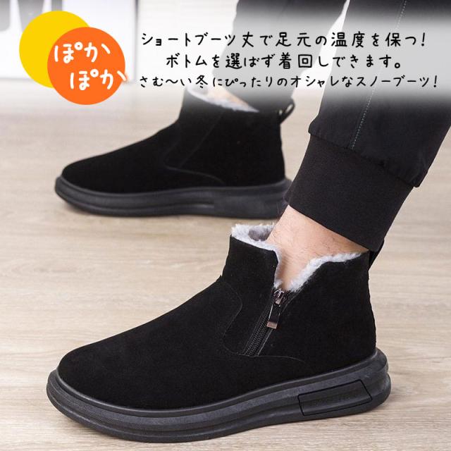 スノーブーツ メンズ ショートブーツ ムートンブーツ 暖かい 裏ボア 裏起毛 シューズ 防寒 アウトドア 雪靴 エンジニア おしゃれ 歩きやすい