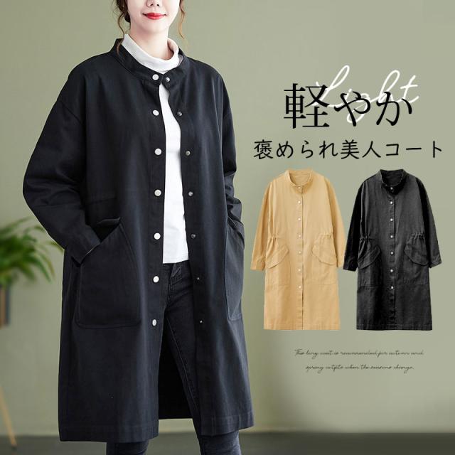 コート レディース 秋 ミリタリーコート ノーカラー スプリングコート トレンチコート モッズ ライトコート 長袖 ブルゾン 軽量 防寒