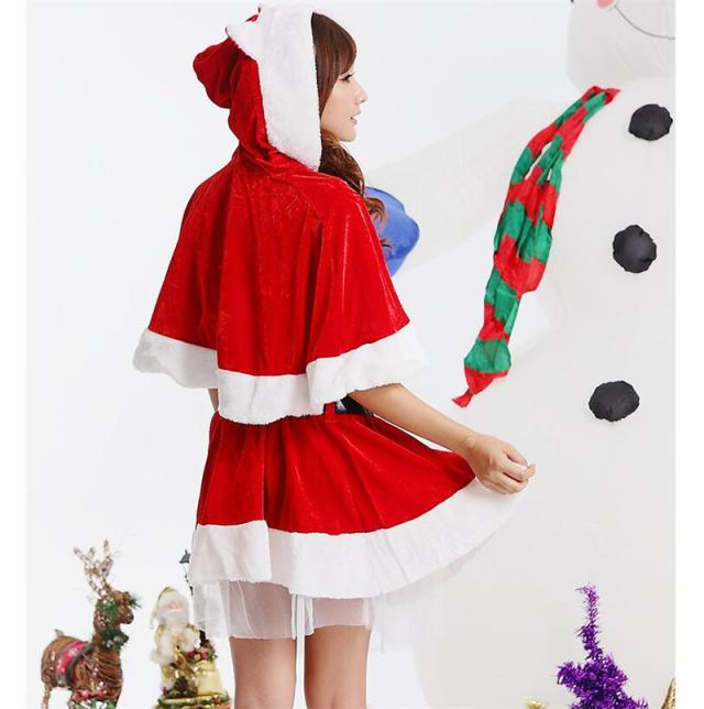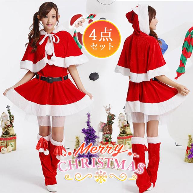 サンタクロース コスプレ クリスマス コスチューム 4点セット 冬用 ワンピース ポンチョ 仮装 衣装 大人用 変身 パーティー イベント ギフト