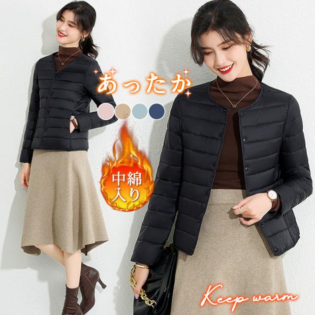 ダウンコート レディース 秋冬 中綿コート インナー ノーカラー ノーカラー ショット 暖かい 軽い アウター 防寒対策 保温 厚手 防風 ジャケット
