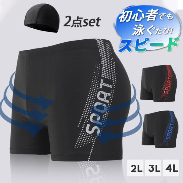 2点セット 競泳水着 メンズ ショットパンツ キャップ付 スイミングパンツ フィットネス スイムパンツ 練習用 競技用 男子 ジム スイミングウェア